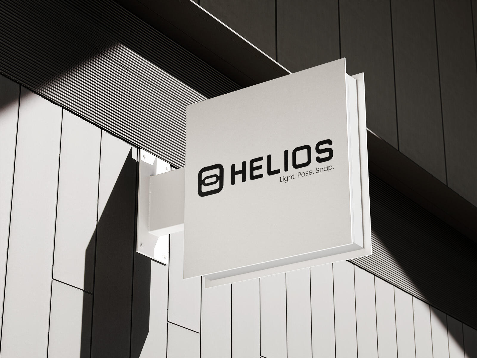 Helios’ logo was inspired by Xenon tubes and flash heads usually found in modern photographic speedlights. The final design included a logo mark resembling a rectangular flash head and a custom sans-serif typeface for the wordmark.