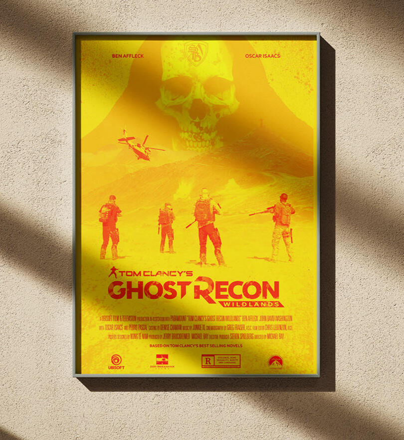 This project reimagines Ubisoft’s action video game Tom Clancy’s Ghost Recon Wildlands as an action movie. The three posters were designed using in-game and custom assets, showcasing the titular Ghost team facing the Santa Blanca Cartel in a fictional version of Bolivia. The high-contrast, duotone colour style was chosen to create an intense and gritty feeling for the posters.